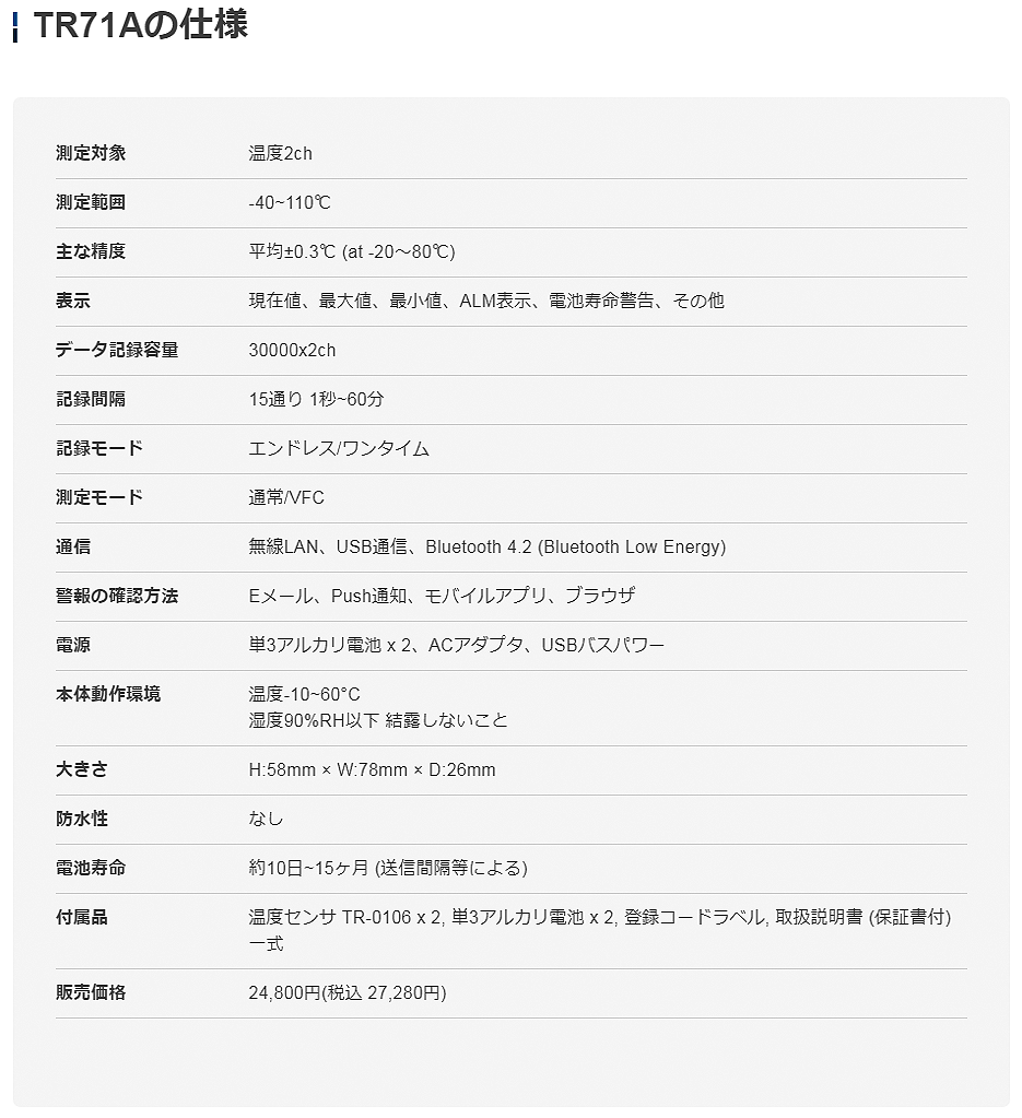 TANDD溫濕度數(shù)據(jù)記錄器(支持藍(lán)牙/無(wú)線(xiàn))TR71A