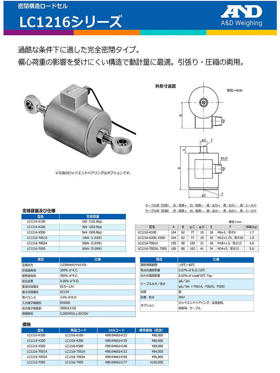 AND(A&D)負(fù)載傳感器LC1216-K100