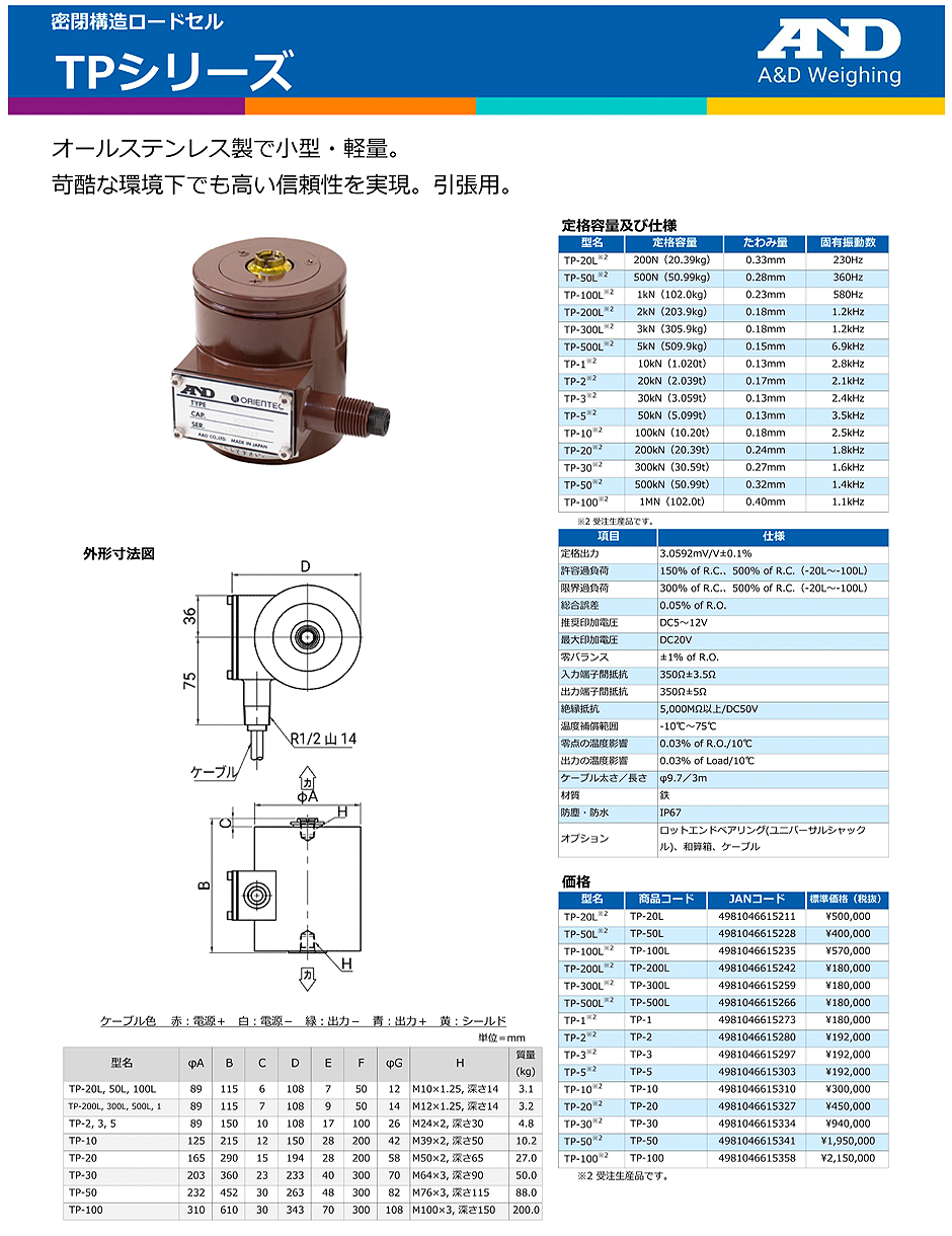 AND(A&D)負(fù)載傳感器TP-3