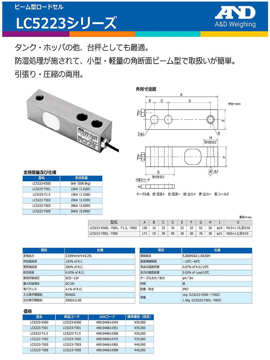 AND(A&D)負(fù)載傳感器LC5223-K500