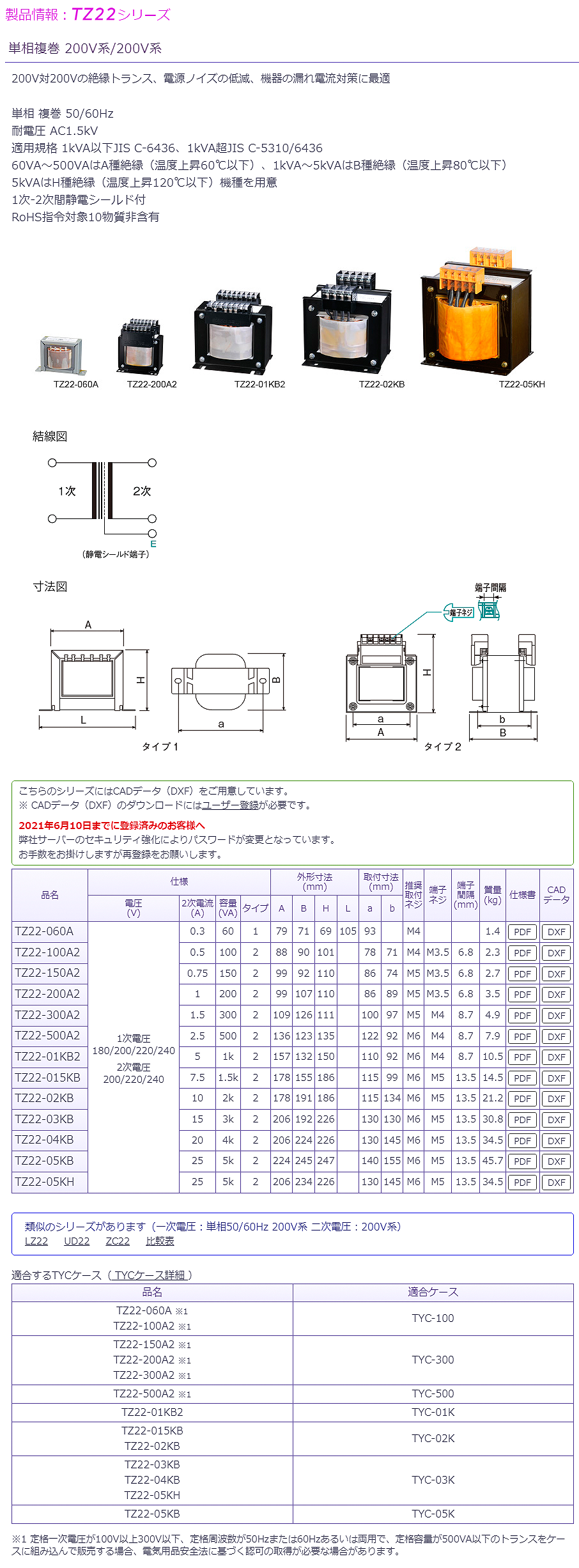 豐澄單相200V/200V變壓器TZ22-05KH