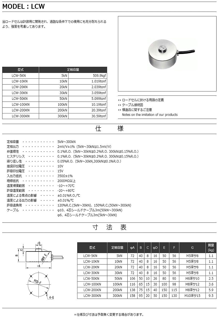 特殊測器荷重傳感器LCW-50KN
