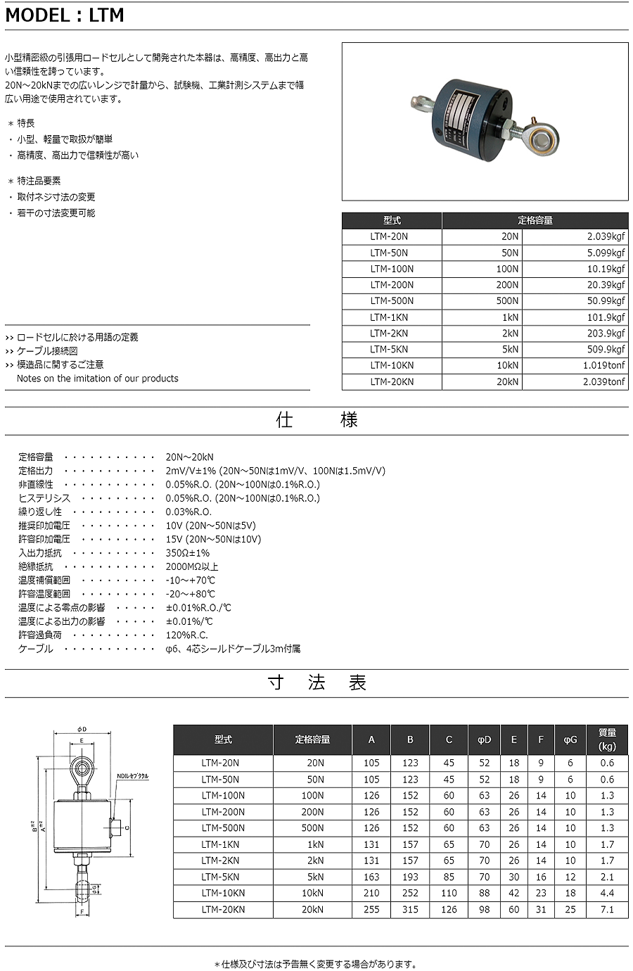 特殊測(cè)器高精度載荷傳感器LTM-2KN