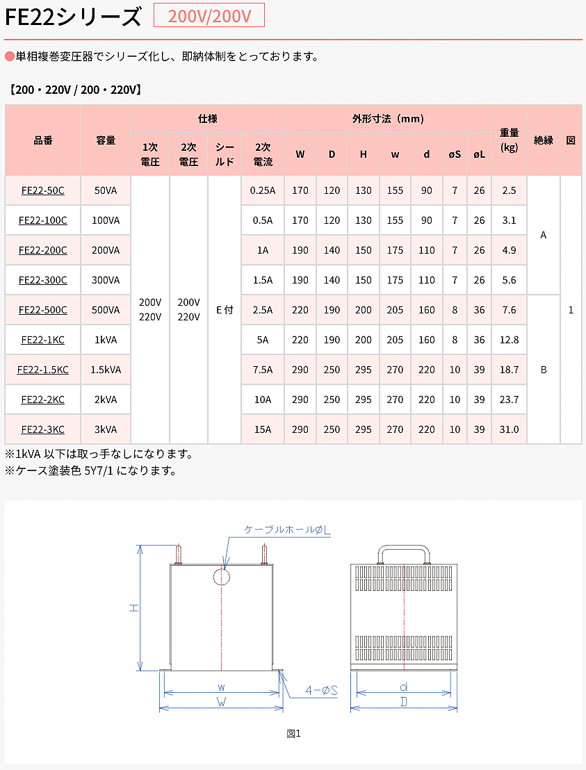 福田電機變壓器FE22-100/FE22-100C