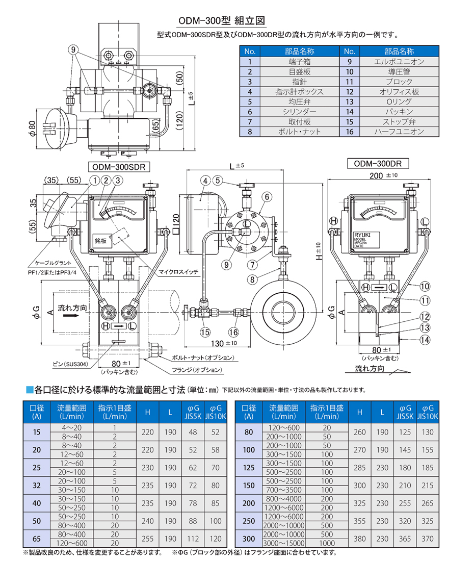 ODM-300S2DR型(帶2觸點、停止閥)ODM-300SDR型(帶1觸點、止回閥)ODM-300DR型(無觸點、帶止回閥)ODM-300S2ST型(無2觸點、停止閥)ODM-300SST型(無1觸點、停止閥)ODM-300ST型(無觸點、無停止閥)